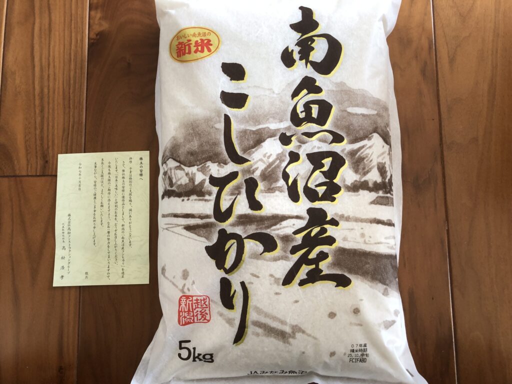 株主優待の「南魚沼産コシヒカリ(新米)5kg」が届きました